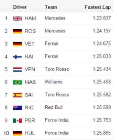 Hamilton on pole, Rosberg 2nd, Vettel 3rd, Raikkonen 4th